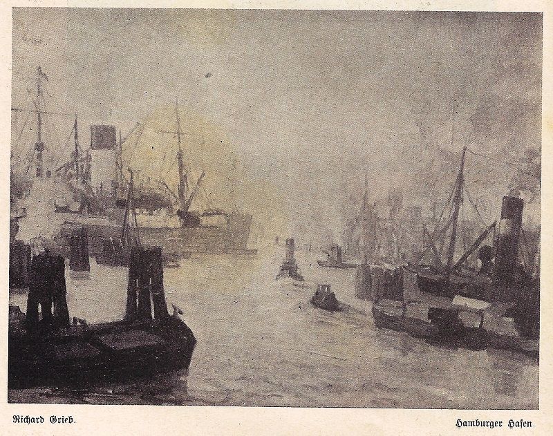 1927 heiratete der Kunstmaler Grieb, der bei seinem Besuch in Hamburg - begeistert von den Motiven - hier auf Jahre hängen geblieben war. Er erarbeitete sich in Hamburg einen ausgezeichneten Namen, so dass auch die städtische Galerie Hamburg von ihm Bilder erwarb, wie schon früher die städtische Galerie in Nürnberg.